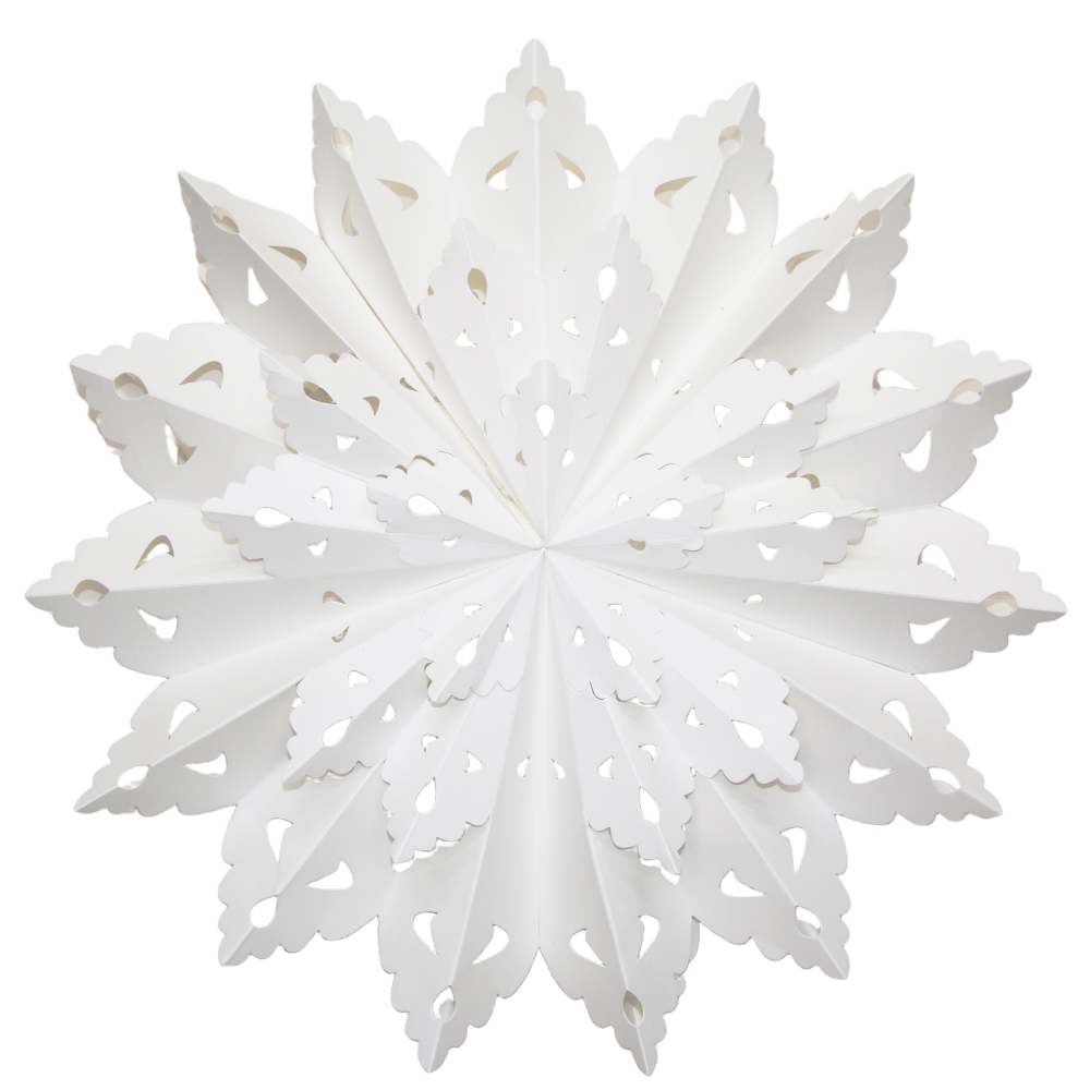 Снежинка на липучках размером 60 см, белого цвета, изготовлена из высококачественной бумаги.