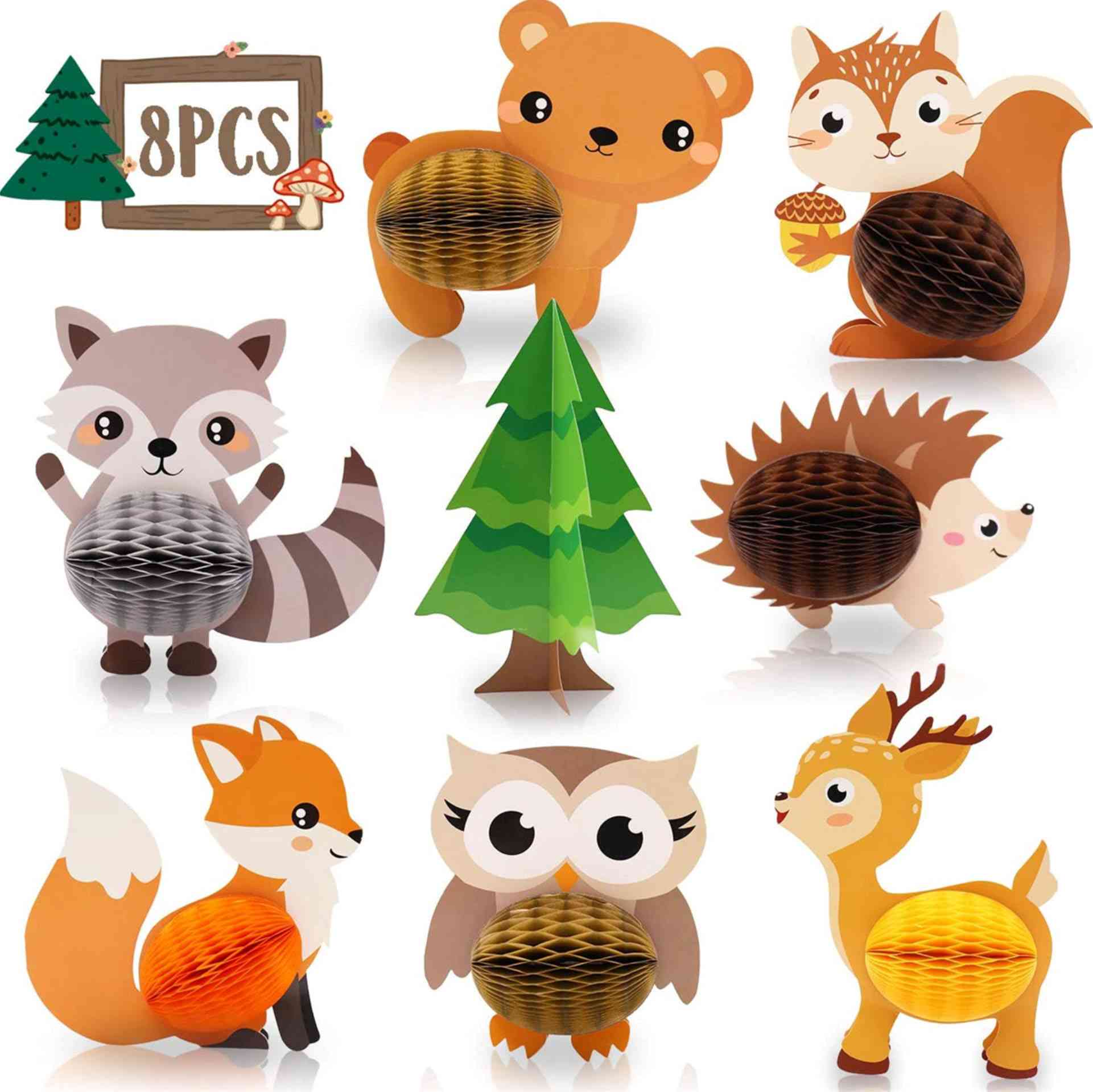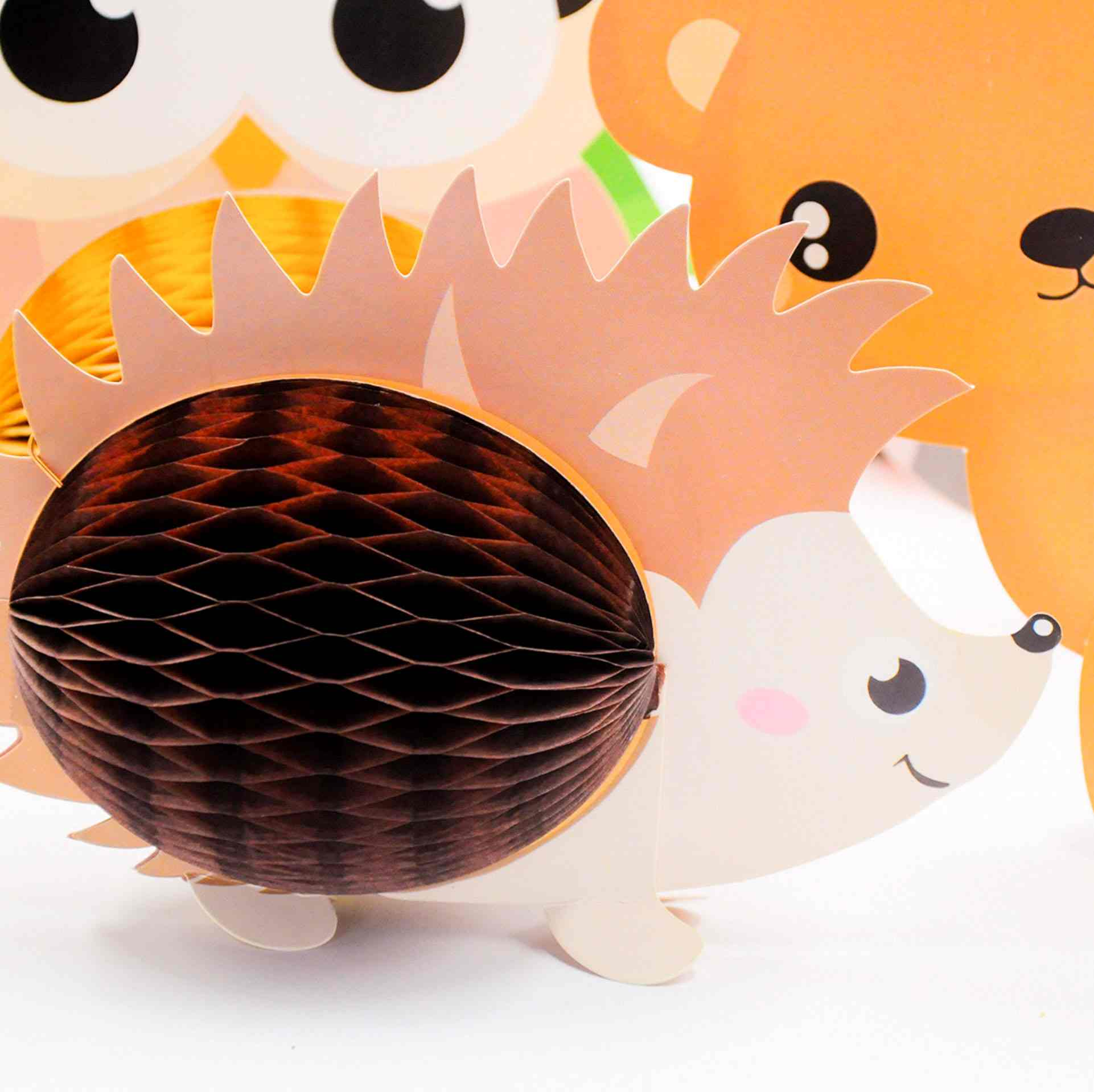 Стоячие сотовые украшения «Лес» — красочный набор декоративных фигурок с лесными животными, который создаст атмосферу уюта и сказки на детском празднике. Украшения отлично подойдут для оформления стола, фотозоны или игровой зоны.