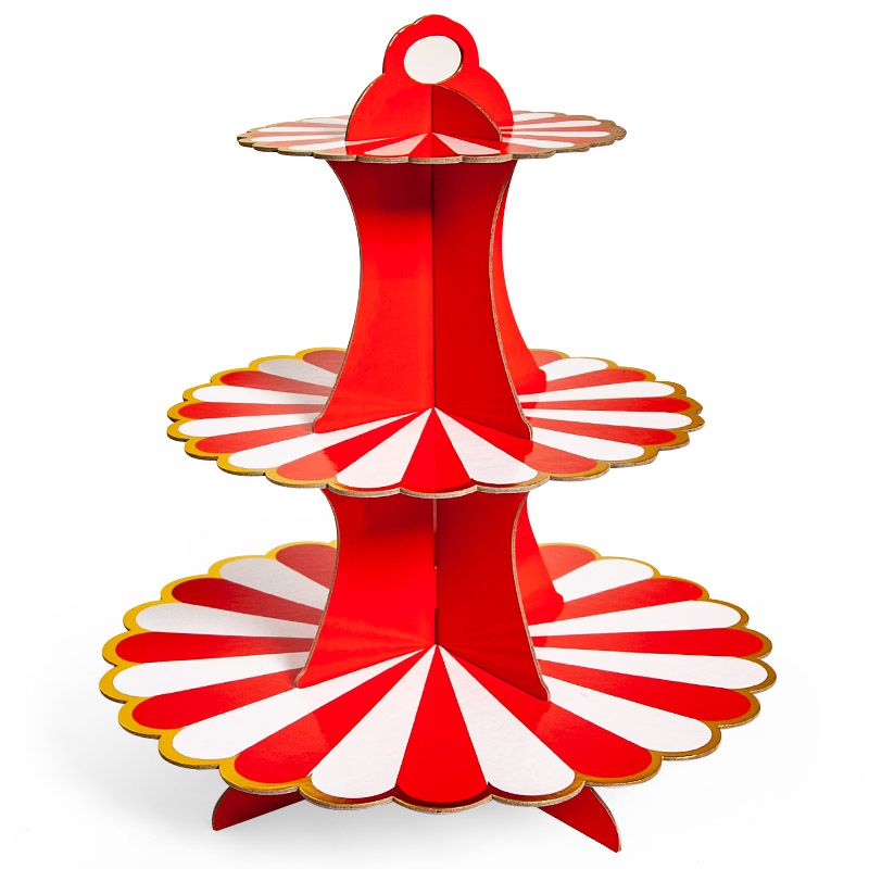 Стойка для десертов Золотая кайма, Красный/Белый, 1 шт