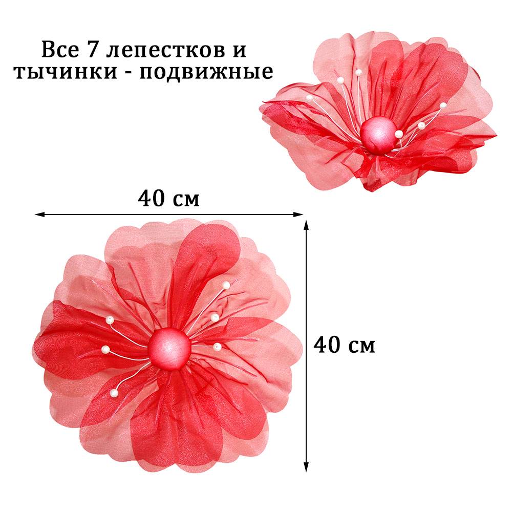 Цветок из органзы 40 см, красный