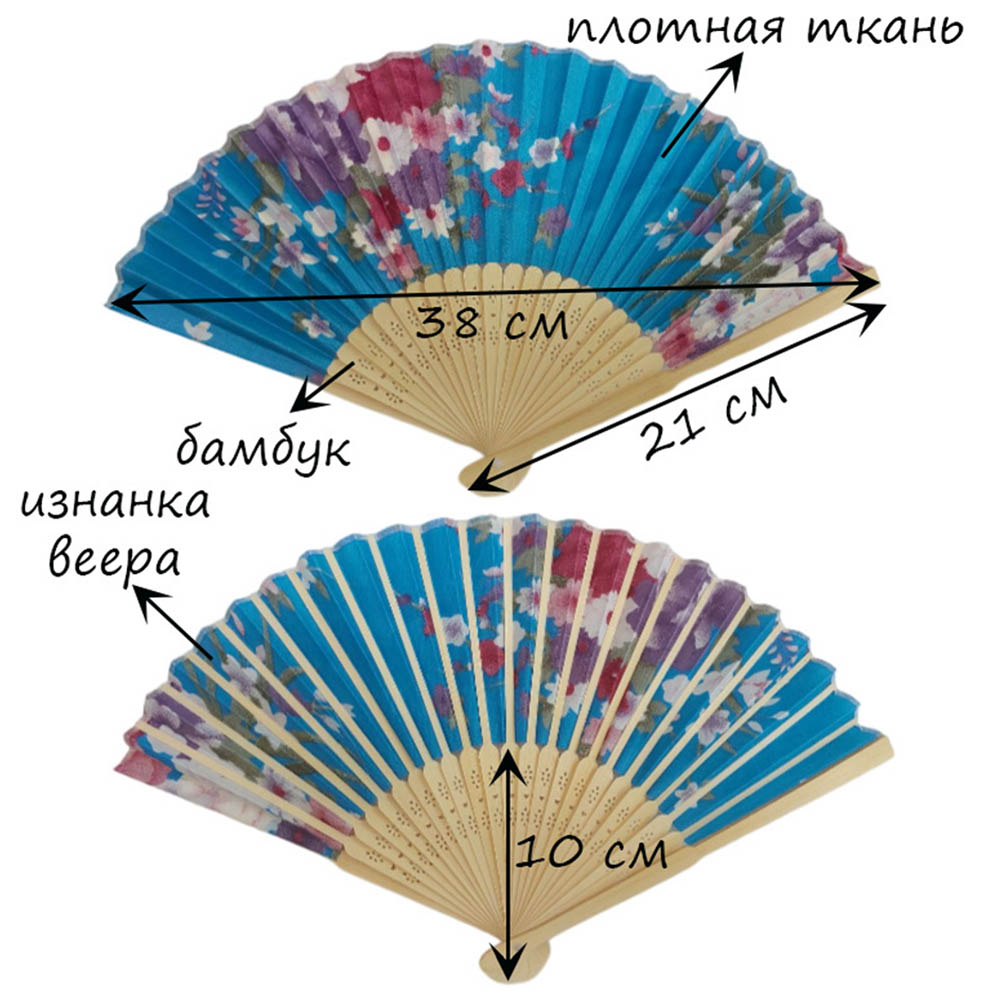 Веер с цветочным узором 38х21 см, №19
