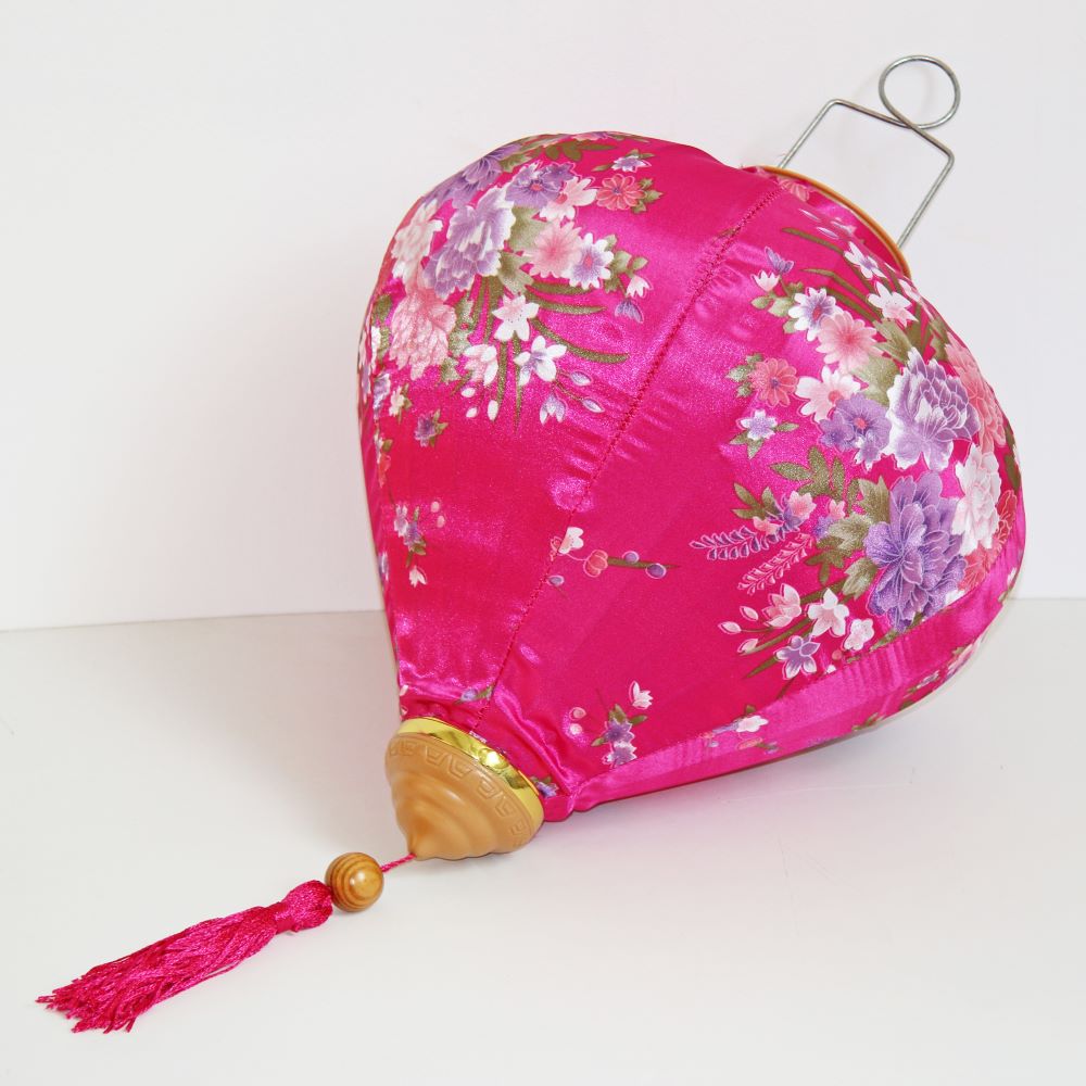 Это традиционные подвесные фонарики ручной работы, изготовленные из шелкового материала с элегантным цветочным узором, которые делают его изысканным и красивым.