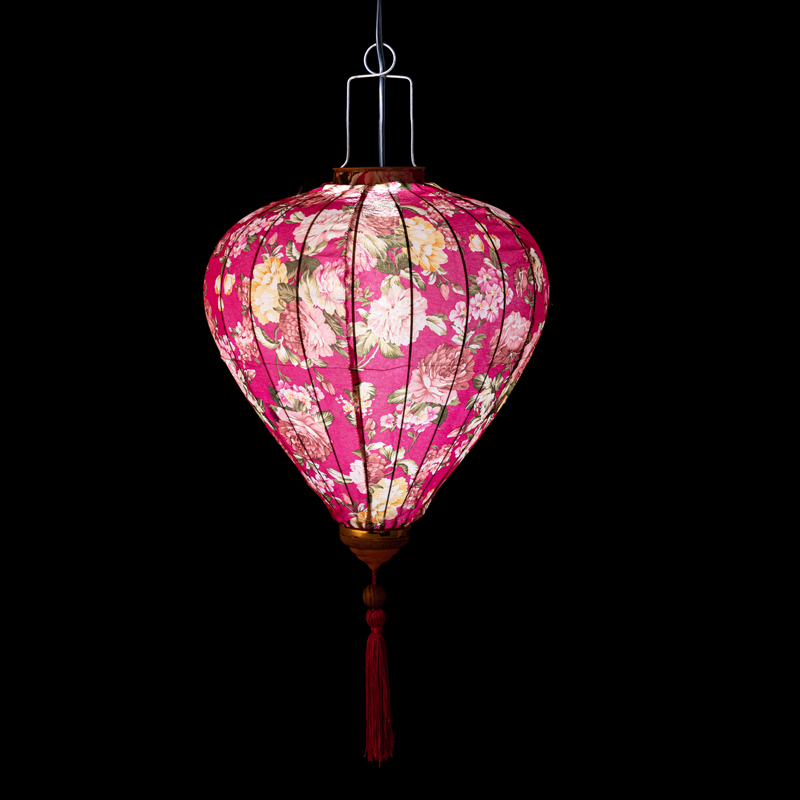 Это традиционные подвесные фонарики ручной работы, изготовленные из шелкового материала с элегантным цветочным узором, которые делают его изысканным и красивым.