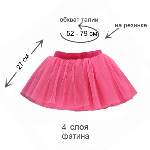 Юбка состоит из 4 слоев мягкого фатина, без подклада.
