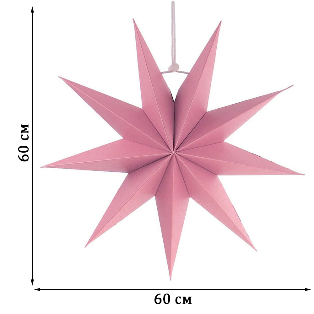 Объёмная девятиконечная звезда 60 см — декоративный элемент для интерьера и праздничного оформления. Лёгкая интерьерная звезда из картона хорошо держит форму и создаёт выразительный объём. Поставляется в сложенном виде, в комплекте шнур для фиксации объёма и подвеса.