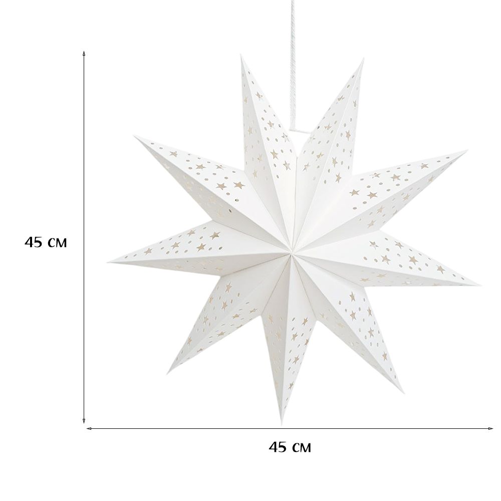 Звезда девятиконечная 45 см, точки и звездочки, белый