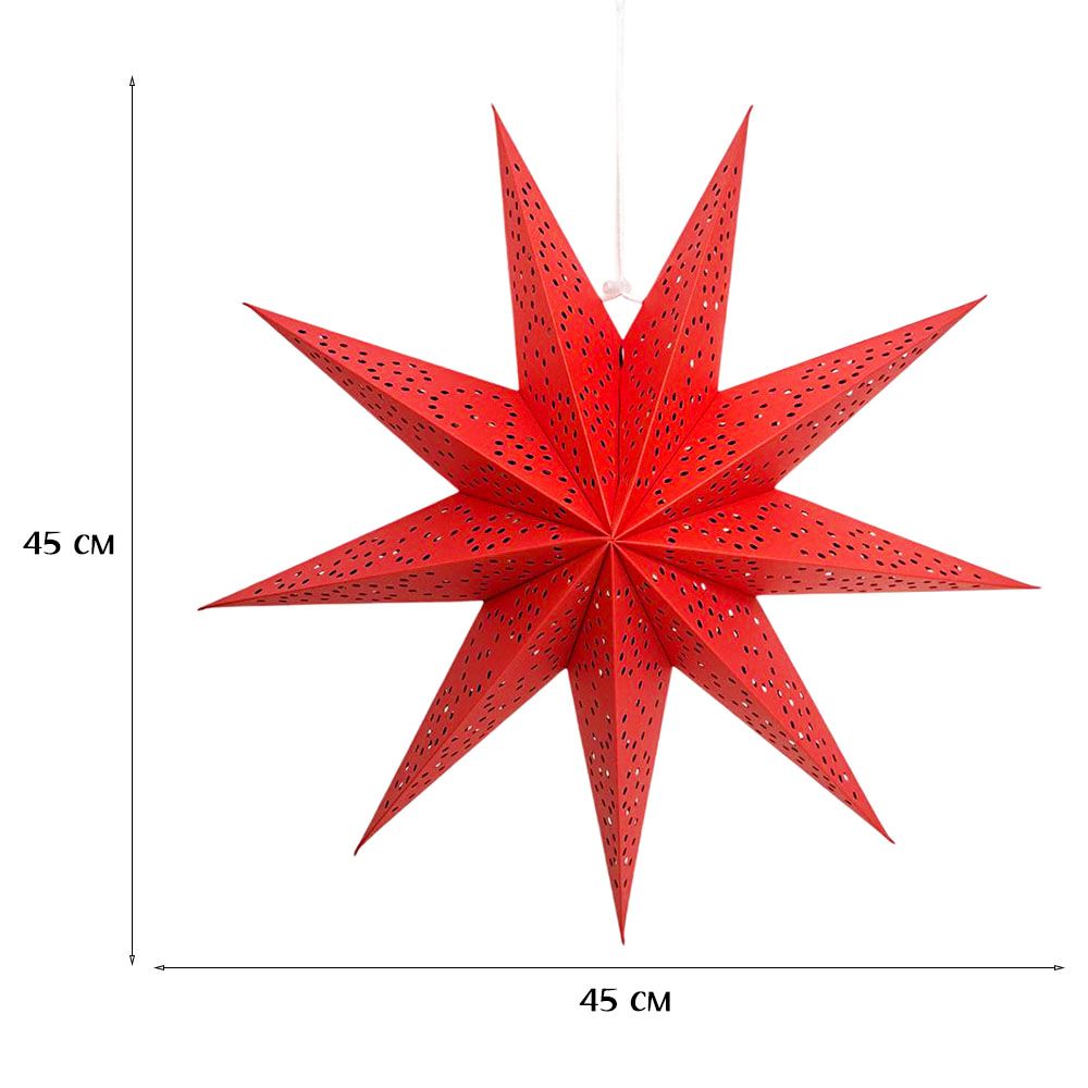Звезда девятиконечная диаметром 45 см, изготовлена из  картона с перфорацией в виде точек.