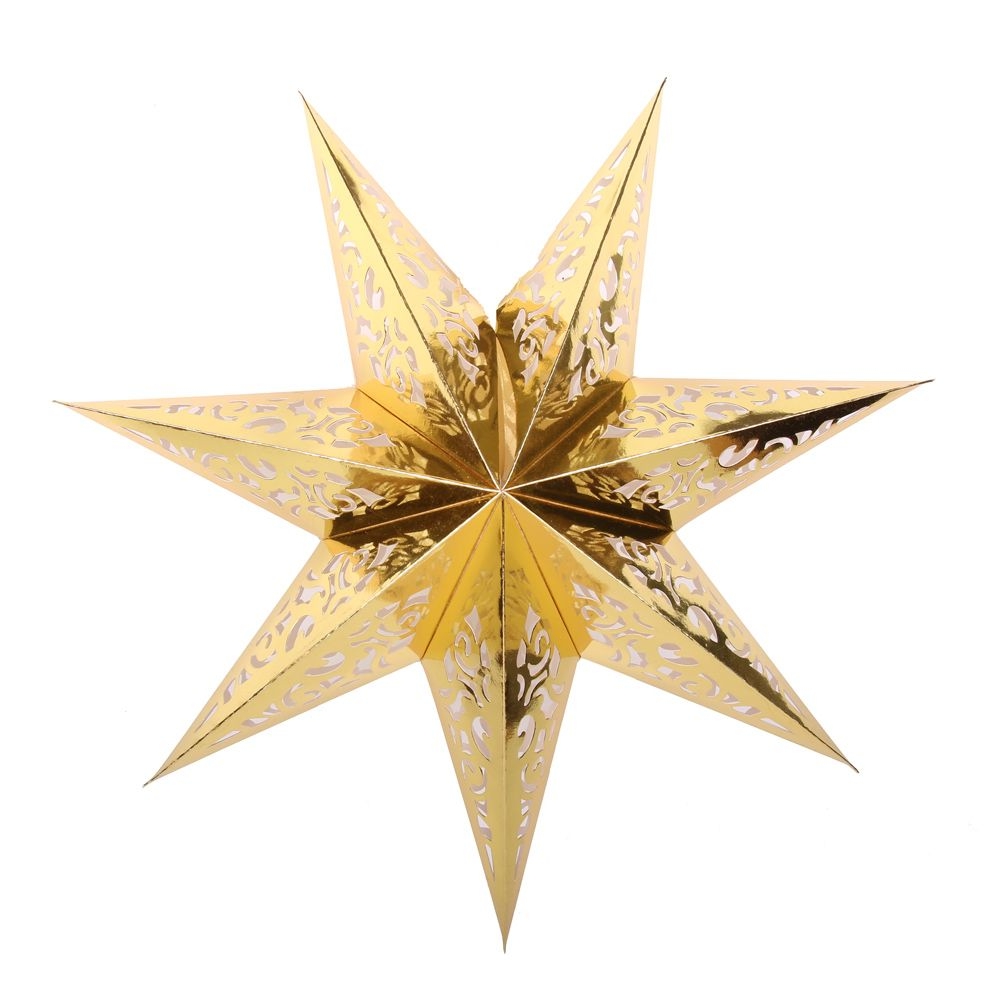 Семиконечная объемная звезда 45 см — великолепный декор из тонкого перфорированного картона. Создает красивые световые эффекты. Поставляется в сложенном виде, в комплекте шнур для фиксации объема и подвеса.