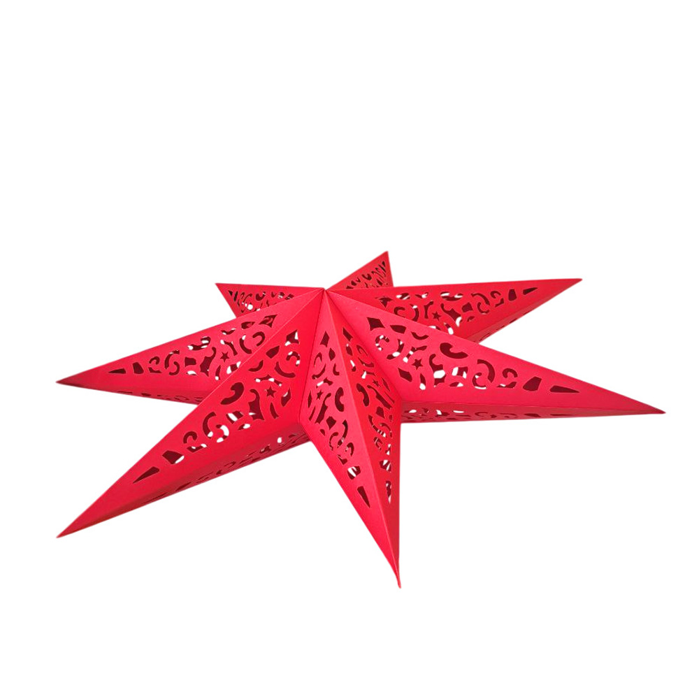 Семиконечная объемная звезда 60 см — великолепный декор из тонкого перфорированного картона. Создает красивые световые эффекты. Поставляется в сложенном виде, в комплекте шнур для фиксации объема и подвеса.