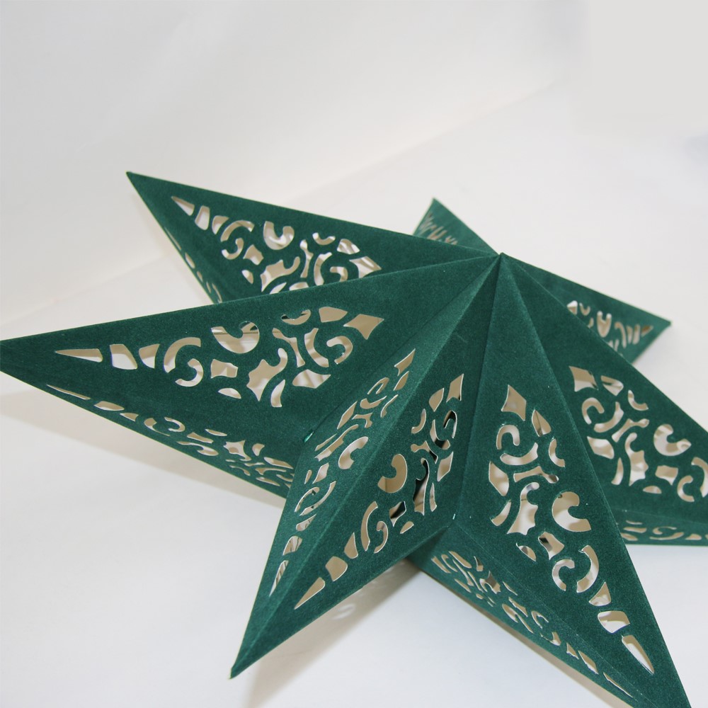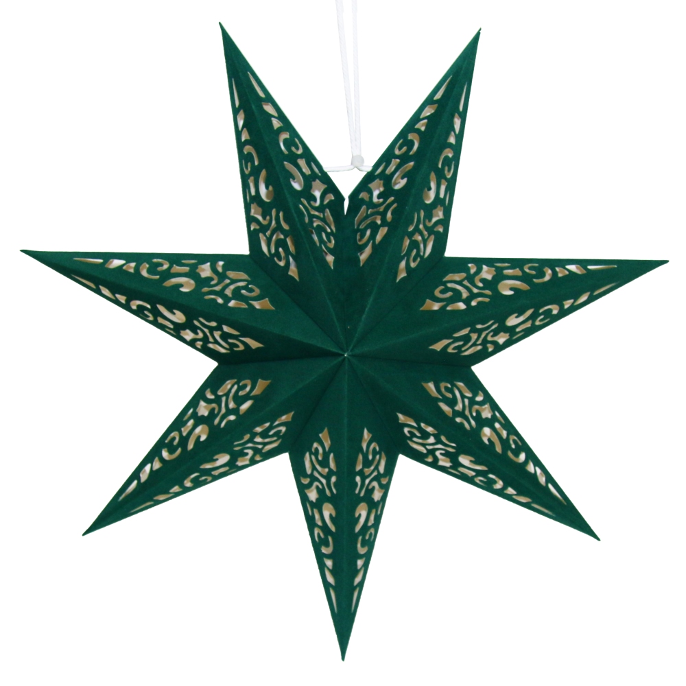 Звезда семиконечная из бархатной бумаги 45 см, Вензель, зеленый